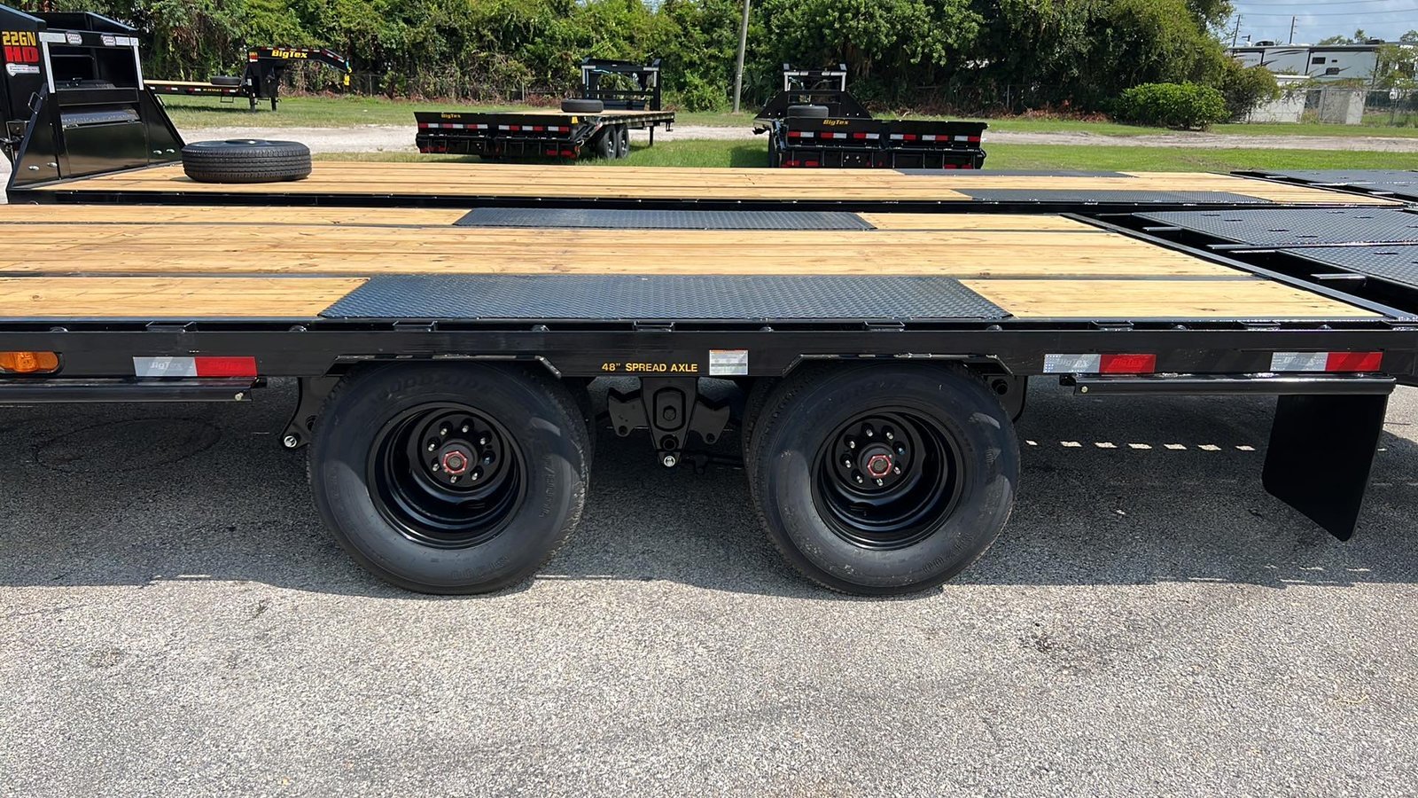 The 22GN from Big Tex is our durable gooseneck trailer equipped with 10K heavy-duty axles with premium adjustable suspension. This unit features a low-profile pierced-beam frame, LED lights, adjustable dual jacks, a chain box and a crank-style adjustable coupler.
