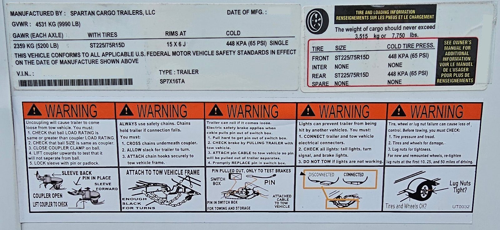 - GAWR (Each Axle): 2359 KG (5200 LB)